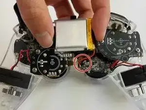 Замена батареи в беспроводном контроллере PS3 Afterglow требует снятия задней панели и последующей пайки проводов батареи на материнскую плату.