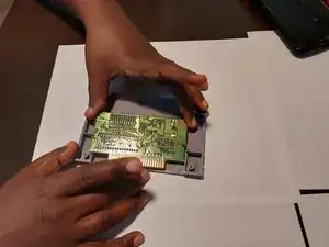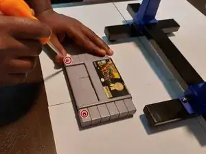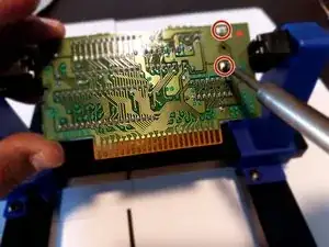 Удалите два защитных винта 3.8мм с передней панели картриджа, используя отвертку Gamebit 3.8мм, чтобы получить доступ к плате.