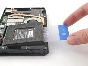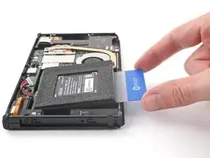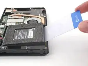 Подденьте пластиковую карточку, чтобы полностью отделить клей батареи.