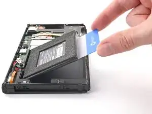 Оставьте открывающую лопатку на месте и нанесите ещё несколько капель средства для удаления клея или изопропилового спирта внутри отсека для батареи.