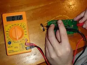 Зачем подключать резервную батарею к резисторам, спросите вы? Здесь есть логика. Посмотрите на печатную плату вокруг двух клемм батареи на первом изображении этого шага. Если вы не знакомы с устройством плат, светло-зелёные участки ПП (видимые на фото) указывают на медную дорожку под маской припоя.