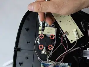 Используя отвертку с головкой Philip размера J1, удалите одиннадцать серебряных винтов длиной 5 мм (обведены красным) вокруг белой панели.
