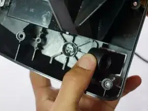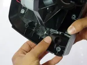 Удалите два серебристых винта 7,5 мм, удерживающих зелёную печатную плату в руле, крестообразной отверткой Phillips #1.