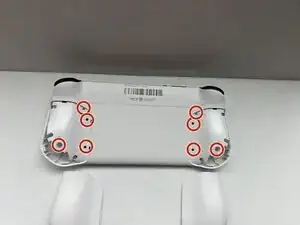 С помощью отвертки Phillips #00 удалите все восемь винтов по 10 мм с задней оболочки, расположенные под рукоятками.