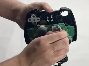 Осторожно введите d-pad обратно в разъем, слегка нажав на него.