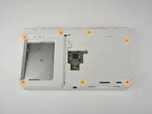 Открутите семь винтов Phillips №00 длиной 6 мм в верхней и нижней части 3DS.