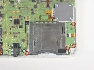 Открутите три винта Y0 длиной 3 мм вдоль правого и нижнего краев считывателя карт памяти SD.