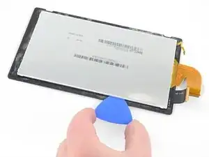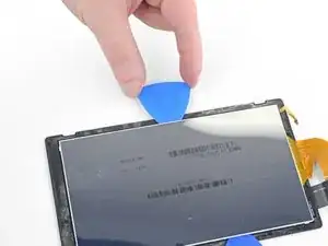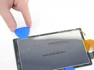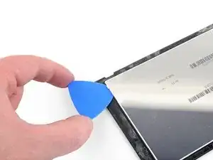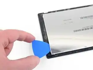 Вставьте плоский конец лопатки между ЖК-панелью и сенсором вдоль левого края сборки экрана.