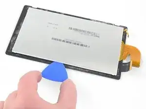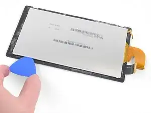 Используйте инструмент для вскрытия, лопатку или ноготь, чтобы откинуть маленький шарнирный фиксатор на ZIF-разъёме шлейфа ЖК-экрана.