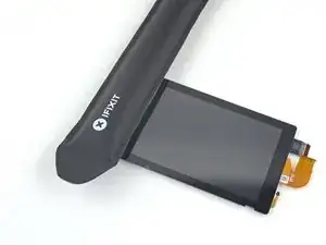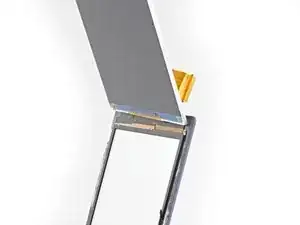 Используйте инструмент для вскрытия, лопатку или ноготь, чтобы откинуть маленький шарнирный фиксатор на ZIF-разъёме меньшего шлейфа ЖК-экрана.