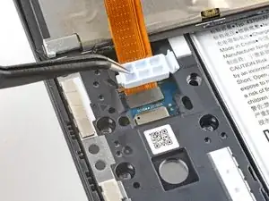 Используйте наконечник лопатки, чтобы приподнять и отсоединить разъём кабеля дисплея.