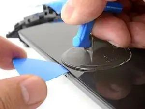 Рывком потяните присоску вверх с сильным, равномерным усилием, чтобы создать щель между экраном и рамкой.