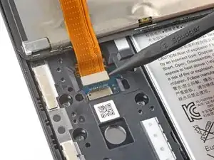 Гибкий печатный кабель (FPC) экрана расположен близко к правому краю. Если вы вставите медиатор слишком глубоко, вы можете повредить FPC.