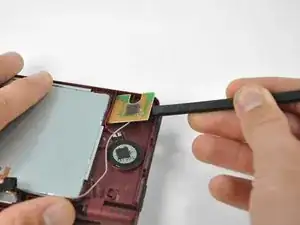 Используйте лопатку, чтобы приподнять левый динамик из его посадочного места в передней рамке.