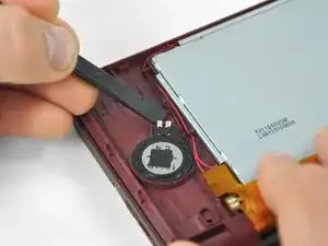 Не пытайтесь полностью снять ЖК-дисплей — он все еще подключен к передней рамке через ленточный кабель передачи данных дисплея.
