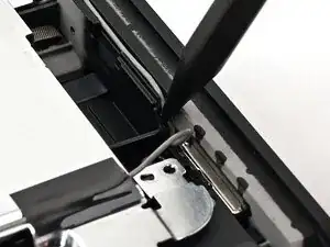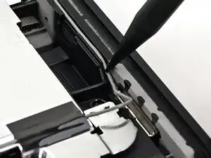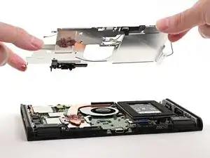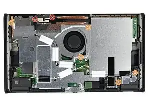 Используйте отвёртку JIS 00, чтобы выкрутить винт длиной 3.1 мм на верхнем торце консоли (рядом с вентиляционными прорезями).