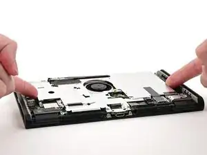 Используйте отвёртку JIS 00, чтобы выкрутить по два золотистых винта длиной 3.6 мм с каждой стороны консоли (всего четыре).