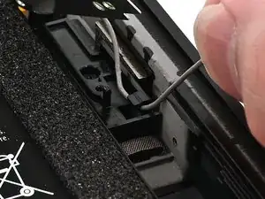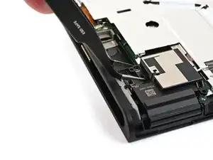 Вставьте медиатор для вскрытия в зазор между задней крышкой и вырезом под динамик на нижнем крае консоли.