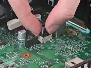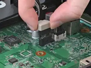 Отсоедините связанный кабельный разъём, соединяющий дисковод с материнской платой, потянув его строго вверх.