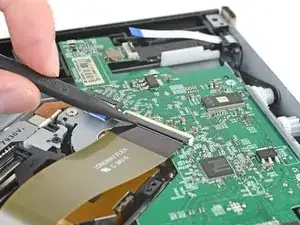 Используйте крестовую отвёртку, чтобы удалить три винта 3.4 мм, фиксирующие плату к корпусу дисковода.