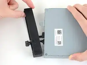 Поднимите дисковод так, чтобы его металлическая защёлка отщелкнулась от блока питания.