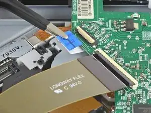 Используйте тупые пинцеты, чтобы аккуратно вытащить ленточный кабель из разъема, опустив его вниз.