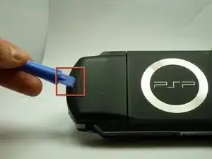 Подденьте эти защёлки над выступами с помощью инструмента для вскрытия PSP. Это освободит защёлки.