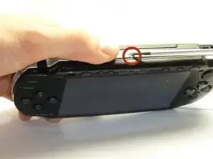 Найдите кнопку крышки батарейного отсека на задней левой стороне PSP.