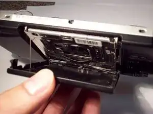 ЖК-экран удерживается рамкой экрана схожими защёлками. Вставьте тонкий инструмент между защёлкой и экраном и аккуратно подденьте, одновременно начиная поднимать экран.