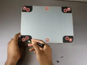 Используйте отвертку Phillips #0, чтобы удалить все десять винтов 3 мм на задней панели.