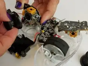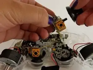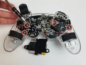 Открутите четыре винта Phillips #0 длиной 9 мм, которые прикреплены к обеим мини-материнским платам управления джойстиками. На каждой мини-материнской плате по два винта.