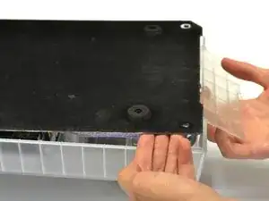 Удерживая защёлки нажатым, поднимите прозрачную ограничительную пластину из узла.