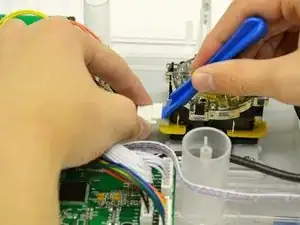 Используйте большой пластиковый инструмент для вскрытия, чтобы чуть приподнять защёлку на белом 5‑контактном разъёме и снять напряжение при вытягивании разъёма.