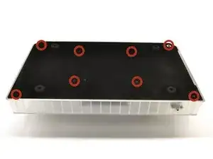 Используйте крестовую отвертку Phillips #1, чтобы выкрутить восемь винтов длиной 9,65 мм, расположенных на войлочной и металлической задней панели.