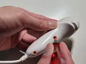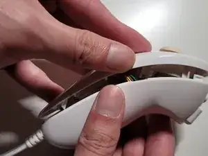 Будьте осторожны, не тяните слишком сильно, чтобы не случайно повреждить детали внутри Nunchuk. Если ваш Nunchuk — старой модели, возможно, вам потребуется приложить больше усилий.