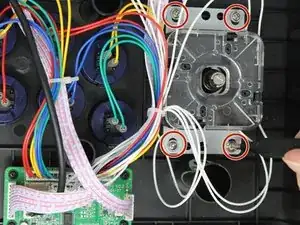Используйте крестовую отвертку #1, чтобы удалить четыре винта, удерживающие рычаг джойстика.