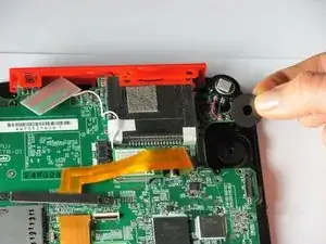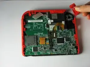 Задняя панель подключена к плате ленточным кабелем, поэтому не поднимайте её слишком далеко от устройства.