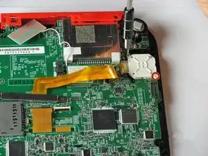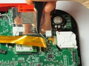 Используйте лопатку, чтобы приподнять серый фиксатор-рычаг на ZIF-разъёме ленточного кабеля джойстика. Подденьте прямо вверх со стороны разъёма, противоположной кабелю.