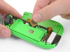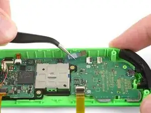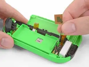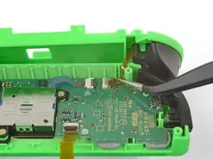Кабель джойстика также зафиксирован ZIF-разъёмом. Используйте пинцет или лопаточку, чтобы откинуть фиксатор ZIF вверх и аккуратно отключить кабель.