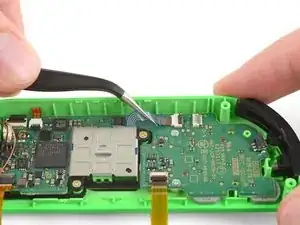 С помощью пинцета аккуратно вытяните плоский кабель кнопки ZR из гнезда ZIF. Теперь промежуточная рама отключена и может быть снята.