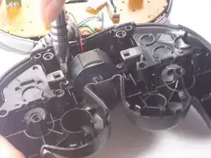 После разъединения найдите моторчик вибрации, прикреплённый к нижней крышке контроллера.