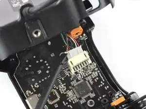Избегайте натяжения кабелей кнопок триггера в ходе этой процедуры и не пытайтесь полностью вынуть плату пока что! Она всё ещё соединена с корпусом контроллера.