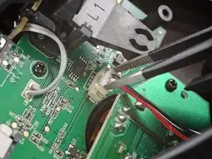 С помощью пинцета с тупыми наконечниками захватите и отведите разъём вверх, чтобы отсоединить его от материнской платы.