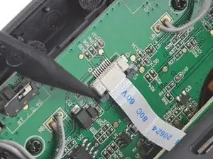 Используя заостренный конец лопатки, отожмите серые защёлки на разъёме шлейфа в сторону от гнезда, параллельно соединительному кабелю, чтобы освободить кабель.