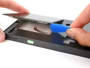 В этот момент экран должен отойти от передней панели корпуса. Если ещё есть сопротивление по краям, воспользуйтесь раскрывающим инструментом, чтобы отделить остатки клея.