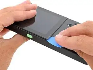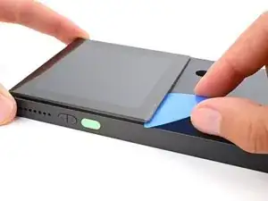 Примечание: Создать первоначальный зазор между экраном и передней панелью сложно из-за сильного клея. В данном руководстве упрощается процесс путём извлечения внутренностей устройства, что позволяет повернуть экран. В качестве альтернативы можно использовать присоску для подъёма экрана без разборки устройства, однако это потребует значительно больше нагрева, что может привести к деформации передней панели.