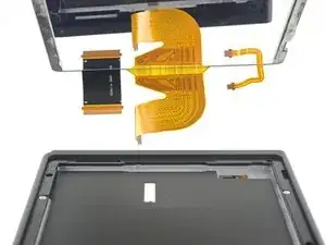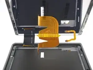 Снимите правый край экрана прямо с устройства, продевая ленточные кабели через рамку по мере извлечения.