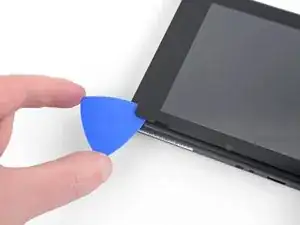 Поместите плоский конец лопатки в зазор вдоль левого края экрана.
