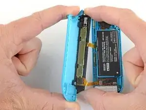 Будьте осторожны, чтобы не засунуть медиатор слишком глубоко внутрь Joy-Con. Это может повредить внутренние компоненты. Задняя панель легко отходит, поэтому не требуется большое давление.