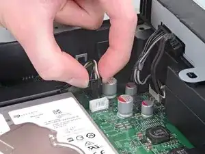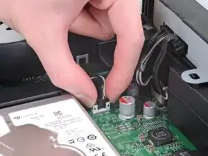 Отсоедините собранный кабельный разъём, соединяющий жёсткий диск с материнской платой, потянув его прямо вверх.